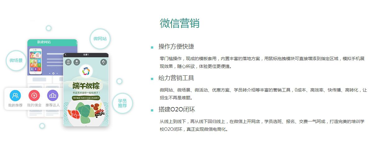 随着移动通讯的普及,微场景也不失为一种好的营销推广方式。校盈易培训行业管理软件结合微信公众号,利用时下流行的通讯工具扩大营销推广范围。